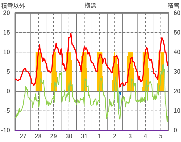 | 日 | 時 | 気温 | 降水 | 風向/風速 | 日照 | 積雪 | 降雪 |