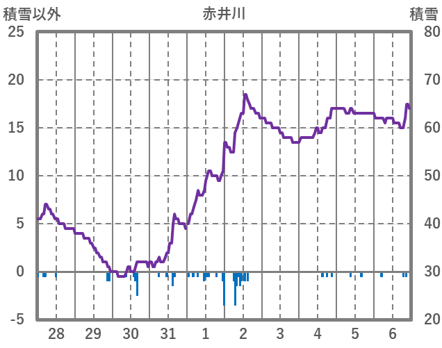 | 日 | 時 | 気温 | 降水 | 風向/風速 | 日照 | 積雪 | 降雪 |