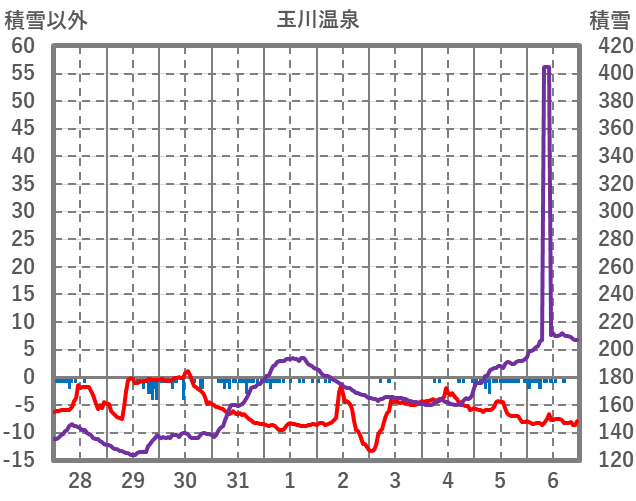 | 日 | 時 | 気温 | 降水 | 風向/風速 | 日照 | 積雪 | 降雪 |