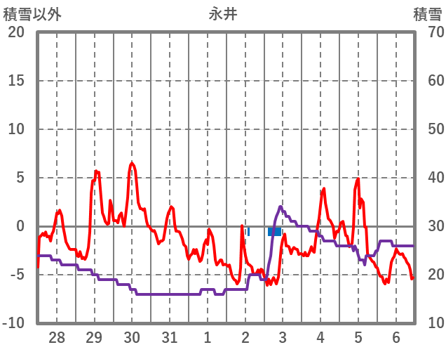 | 日 | 時 | 気温 | 降水 | 風向/風速 | 日照 | 積雪 | 降雪 |