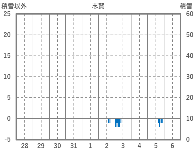 | 日 | 時 | 気温 | 降水 | 風向/風速 | 日照 | 積雪 | 降雪 |