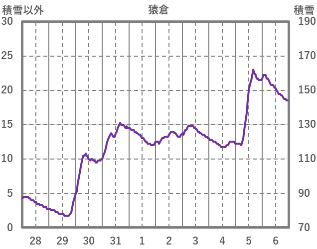 | 日 | 時 | 気温 | 降水 | 風向/風速 | 日照 | 積雪 | 降雪 |