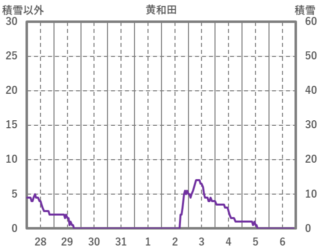 | 日 | 時 | 気温 | 降水 | 風向/風速 | 日照 | 積雪 | 降雪 |