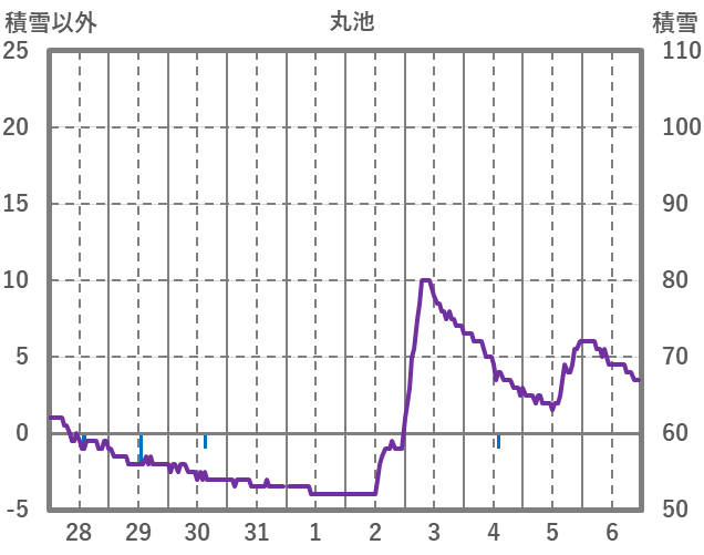 | 日 | 時 | 気温 | 降水 | 風向/風速 | 日照 | 積雪 | 降雪 |