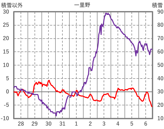 | 日 | 時 | 気温 | 降水 | 風向/風速 | 日照 | 積雪 | 降雪 |