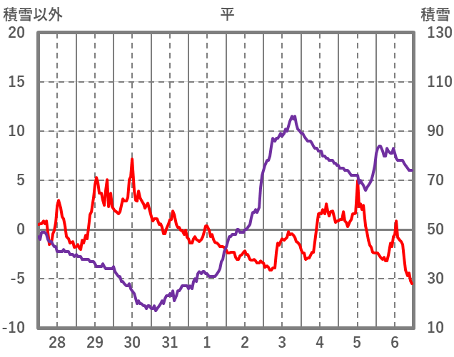 | 日 | 時 | 気温 | 降水 | 風向/風速 | 日照 | 積雪 | 降雪 |