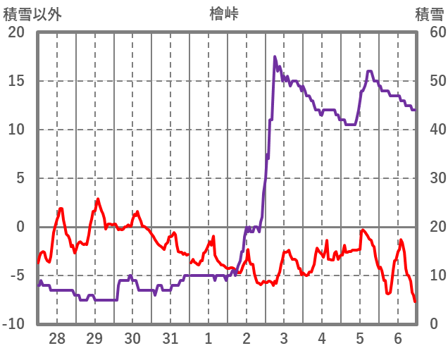 | 日 | 時 | 気温 | 降水 | 風向/風速 | 日照 | 積雪 | 降雪 |