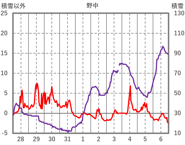 | 日 | 時 | 気温 | 降水 | 風向/風速 | 日照 | 積雪 | 降雪 |