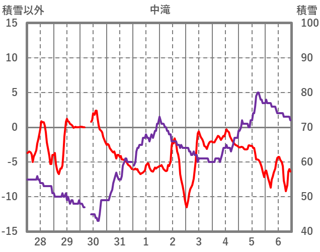 | 日 | 時 | 気温 | 降水 | 風向/風速 | 日照 | 積雪 | 降雪 |