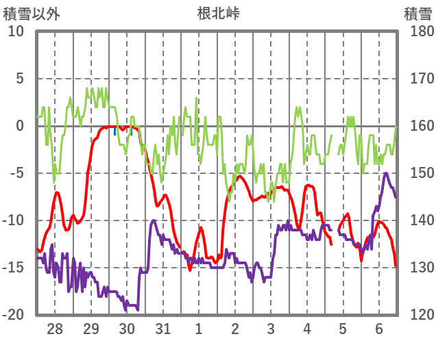| 日 | 時 | 気温 | 降水 | 風向/風速 | 日照 | 積雪 | 降雪 |