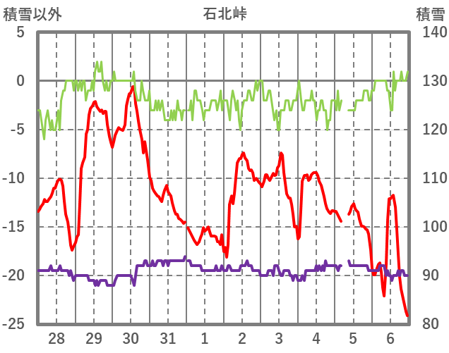 | 日 | 時 | 気温 | 降水 | 風向/風速 | 日照 | 積雪 | 降雪 |