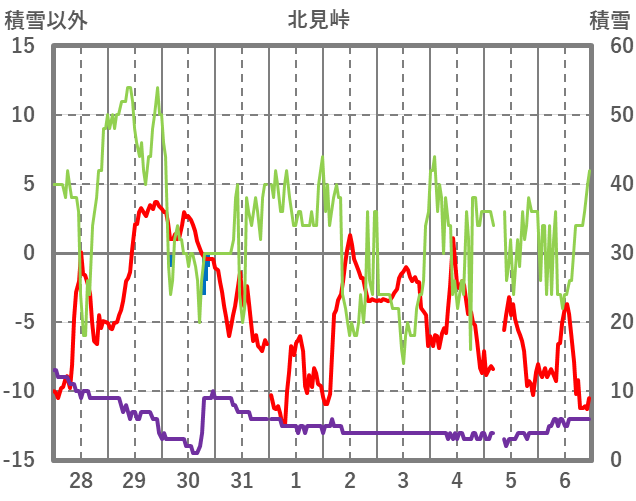 | 日 | 時 | 気温 | 降水 | 風向/風速 | 日照 | 積雪 | 降雪 |