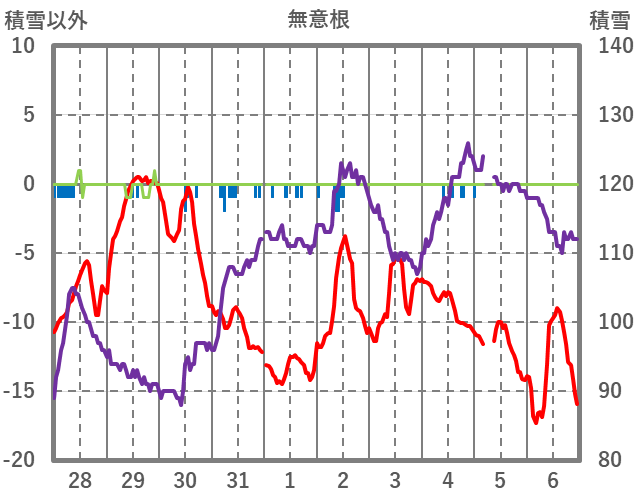 | 日 | 時 | 気温 | 降水 | 風向/風速 | 日照 | 積雪 | 降雪 |
