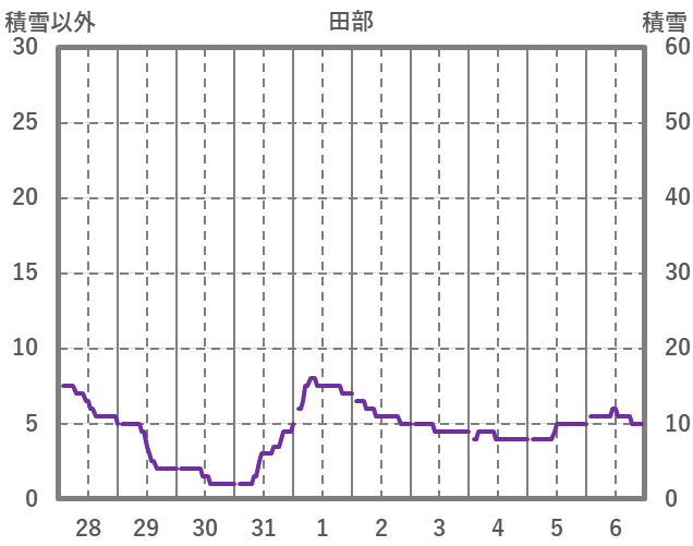 | 日 | 時 | 気温 | 降水 | 風向/風速 | 日照 | 積雪 | 降雪 |