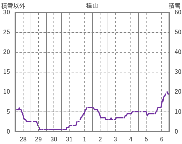 | 日 | 時 | 気温 | 降水 | 風向/風速 | 日照 | 積雪 | 降雪 |