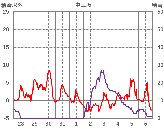 | 日 | 時 | 気温 | 降水 | 風向/風速 | 日照 | 積雪 | 降雪 |