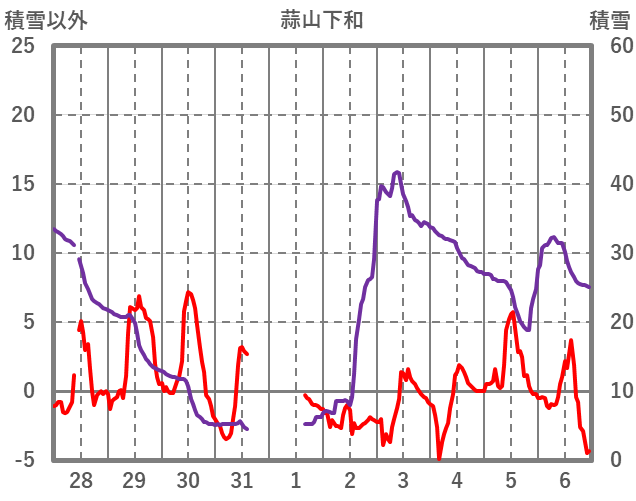 | 日 | 時 | 気温 | 降水 | 風向/風速 | 日照 | 積雪 | 降雪 |