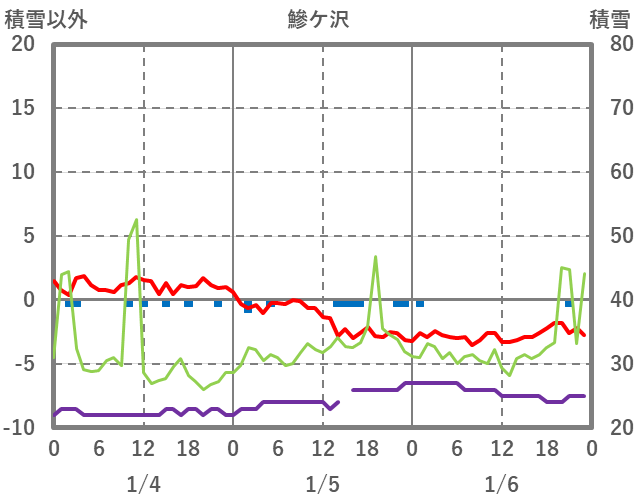 | 日 | 時 | 気温 | 降水 | 風向/風速 | 日照 | 積雪 | 降雪 |