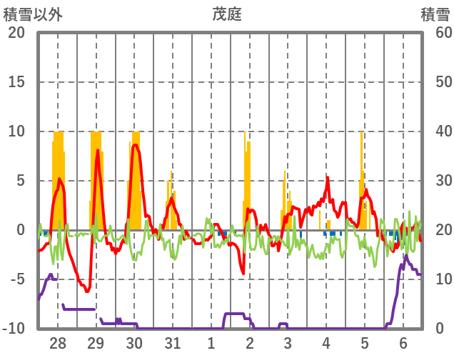 | 日 | 時 | 気温 | 降水 | 風向/風速 | 日照 | 積雪 | 降雪 |