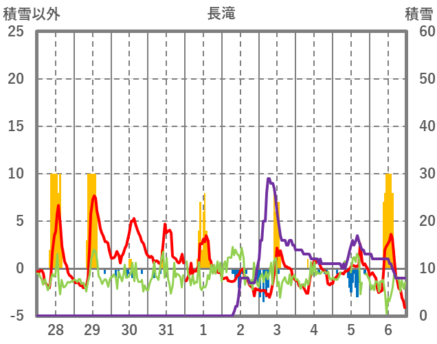 | 日 | 時 | 気温 | 降水 | 風向/風速 | 日照 | 積雪 | 降雪 |