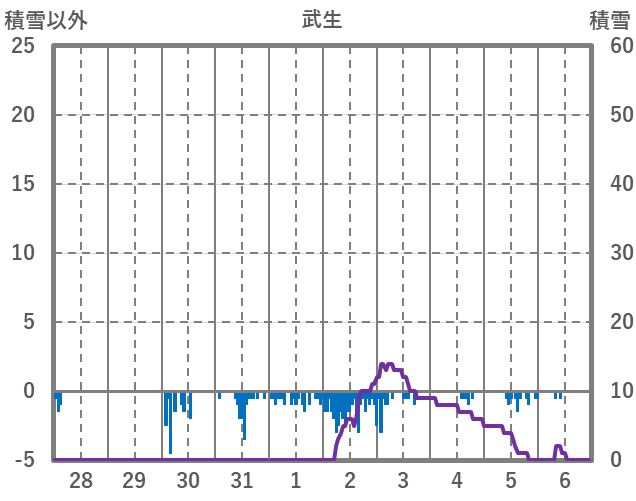 | 日 | 時 | 気温 | 降水 | 風向/風速 | 日照 | 積雪 | 降雪 |
