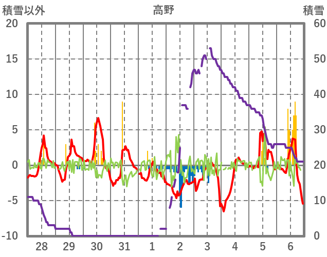 | 日 | 時 | 気温 | 降水 | 風向/風速 | 日照 | 積雪 | 降雪 |