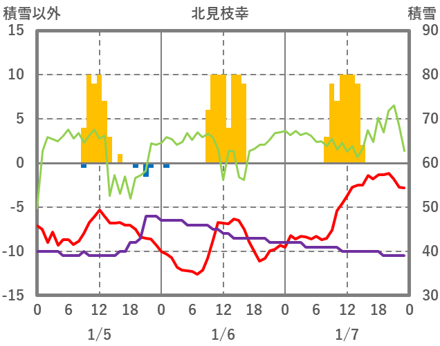 | 日 | 時 | 気温 | 降水 | 風向/風速 | 日照 | 積雪 | 降雪 |