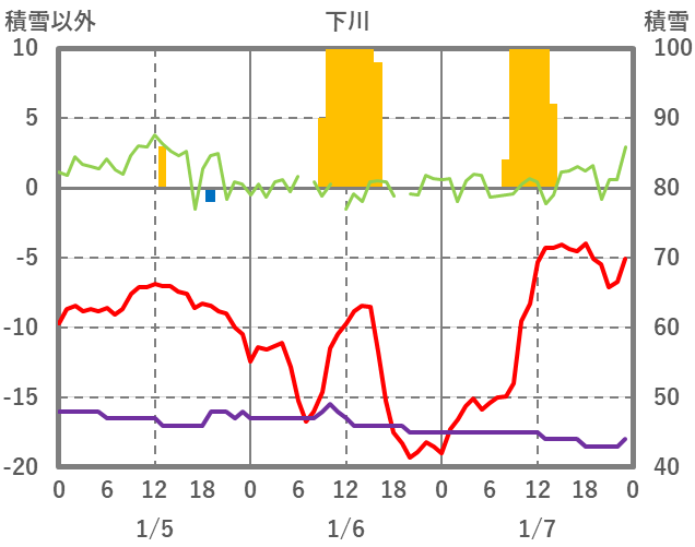 | 日 | 時 | 気温 | 降水 | 風向/風速 | 日照 | 積雪 | 降雪 |