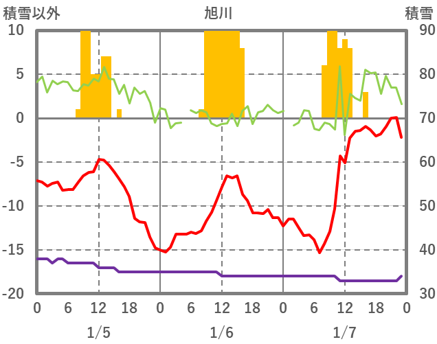 | 日 | 時 | 気温 | 降水 | 風向/風速 | 日照 | 積雪 | 降雪 |