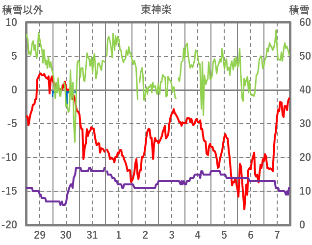 | 日 | 時 | 気温 | 降水 | 風向/風速 | 日照 | 積雪 | 降雪 |