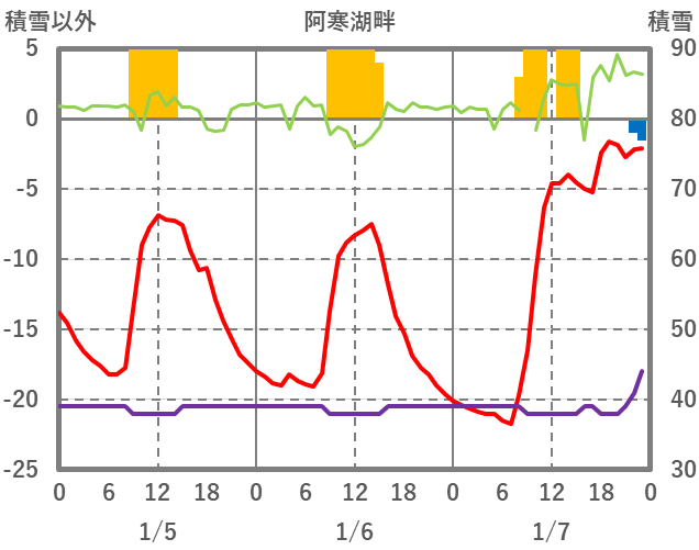 | 日 | 時 | 気温 | 降水 | 風向/風速 | 日照 | 積雪 | 降雪 |