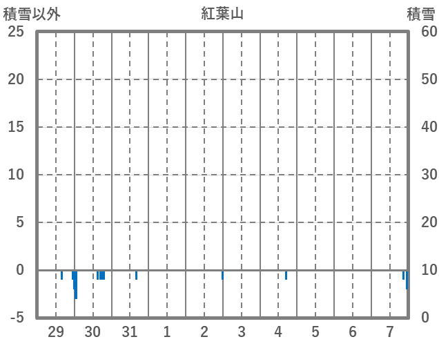 | 日 | 時 | 気温 | 降水 | 風向/風速 | 日照 | 積雪 | 降雪 |