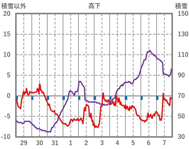 | 日 | 時 | 気温 | 降水 | 風向/風速 | 日照 | 積雪 | 降雪 |