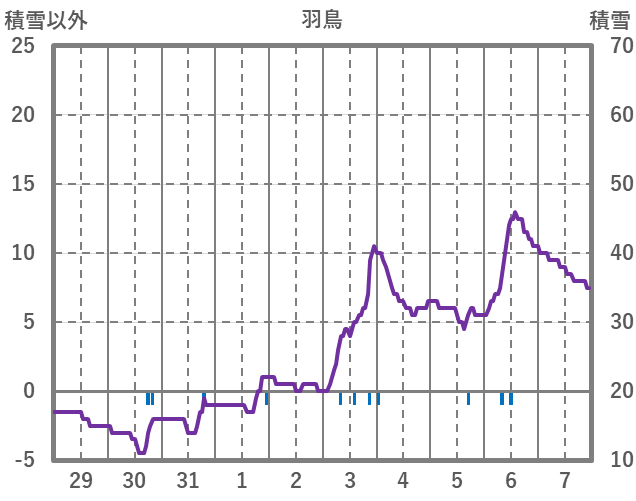 | 日 | 時 | 気温 | 降水 | 風向/風速 | 日照 | 積雪 | 降雪 |