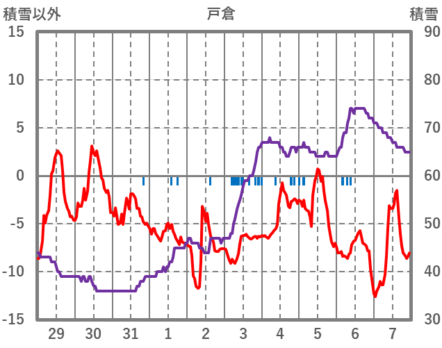 | 日 | 時 | 気温 | 降水 | 風向/風速 | 日照 | 積雪 | 降雪 |