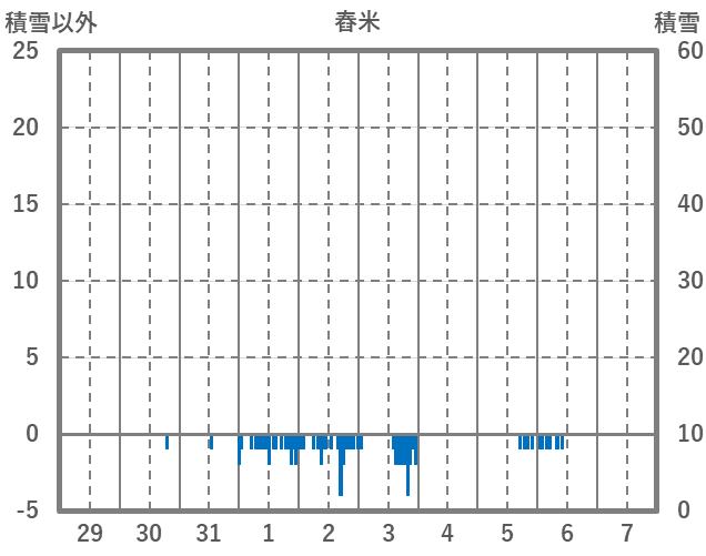 | 日 | 時 | 気温 | 降水 | 風向/風速 | 日照 | 積雪 | 降雪 |