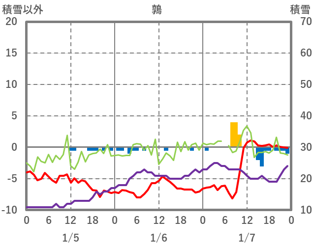 | 日 | 時 | 気温 | 降水 | 風向/風速 | 日照 | 積雪 | 降雪 |