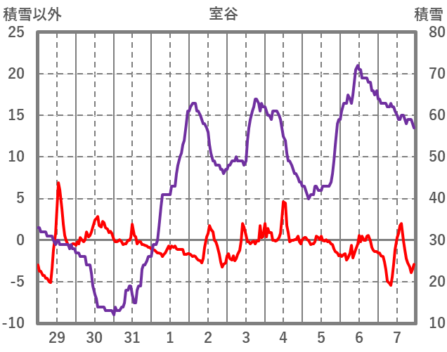| 日 | 時 | 気温 | 降水 | 風向/風速 | 日照 | 積雪 | 降雪 |
