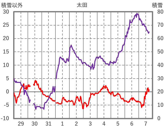 | 日 | 時 | 気温 | 降水 | 風向/風速 | 日照 | 積雪 | 降雪 |
