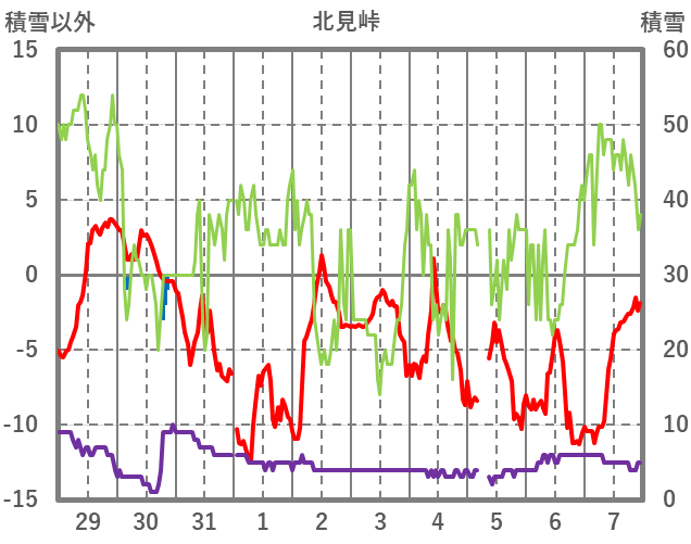 | 日 | 時 | 気温 | 降水 | 風向/風速 | 日照 | 積雪 | 降雪 |