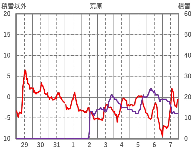 | 日 | 時 | 気温 | 降水 | 風向/風速 | 日照 | 積雪 | 降雪 |