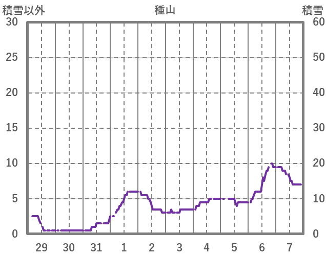 | 日 | 時 | 気温 | 降水 | 風向/風速 | 日照 | 積雪 | 降雪 |