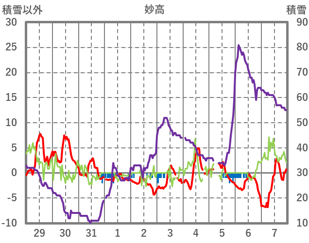 | 日 | 時 | 気温 | 降水 | 風向/風速 | 日照 | 積雪 | 降雪 |
