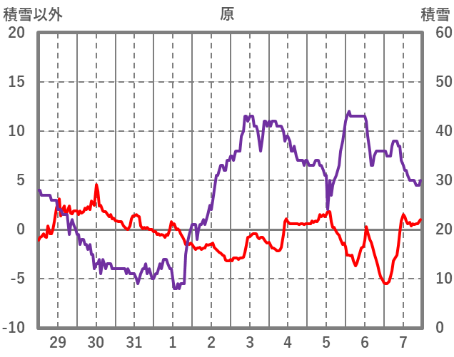 | 日 | 時 | 気温 | 降水 | 風向/風速 | 日照 | 積雪 | 降雪 |