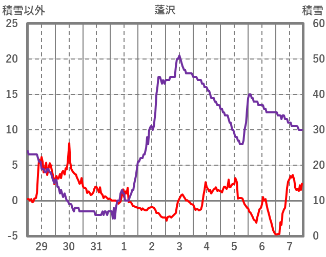 | 日 | 時 | 気温 | 降水 | 風向/風速 | 日照 | 積雪 | 降雪 |