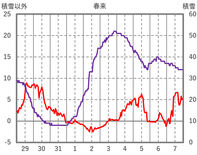 | 日 | 時 | 気温 | 降水 | 風向/風速 | 日照 | 積雪 | 降雪 |