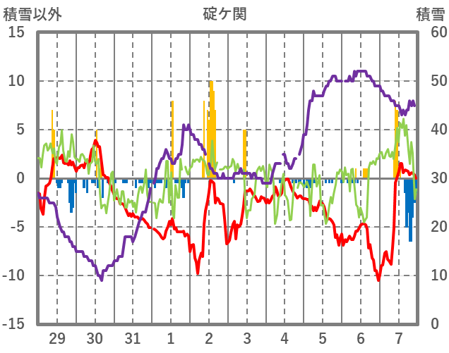 | 日 | 時 | 気温 | 降水 | 風向/風速 | 日照 | 積雪 | 降雪 |