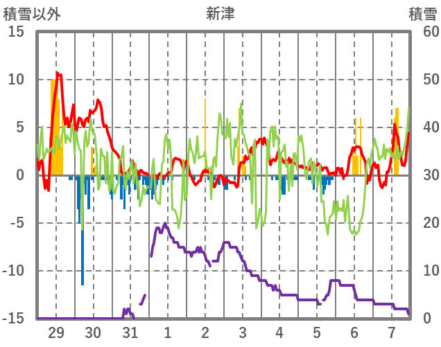 | 日 | 時 | 気温 | 降水 | 風向/風速 | 日照 | 積雪 | 降雪 |
