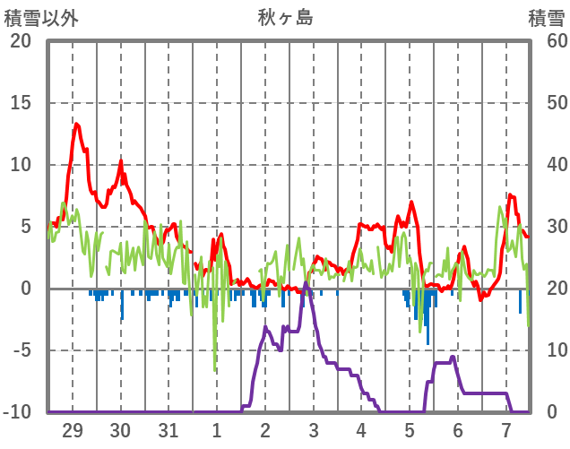 | 日 | 時 | 気温 | 降水 | 風向/風速 | 日照 | 積雪 | 降雪 |