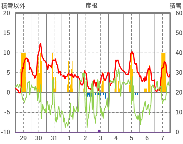 | 日 | 時 | 気温 | 降水 | 風向/風速 | 日照 | 積雪 | 降雪 |